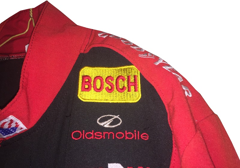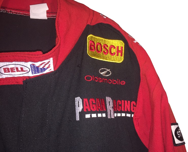 The left chest features BOSCH, OLDSMOBILE, and PAGAN RACING logos embroidered.