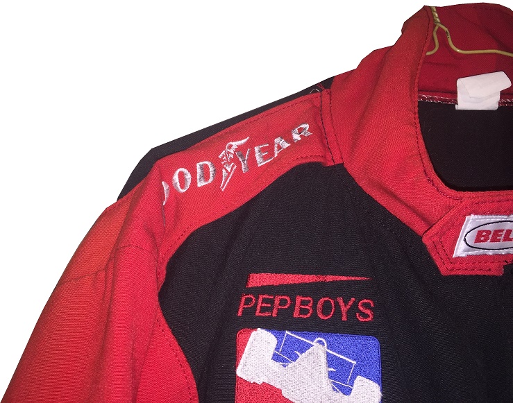 The right chest has PEP BOYS, INDY RACING LEAGUE, and PPG logos embroidered.