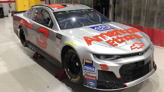Austin Dillon #3 American Ethanol Throwback Chevy Camaro–New scheme for 2018, based on Dale Earnhardt’s 1995 “Silver Wrench” All-Star Scheme. A