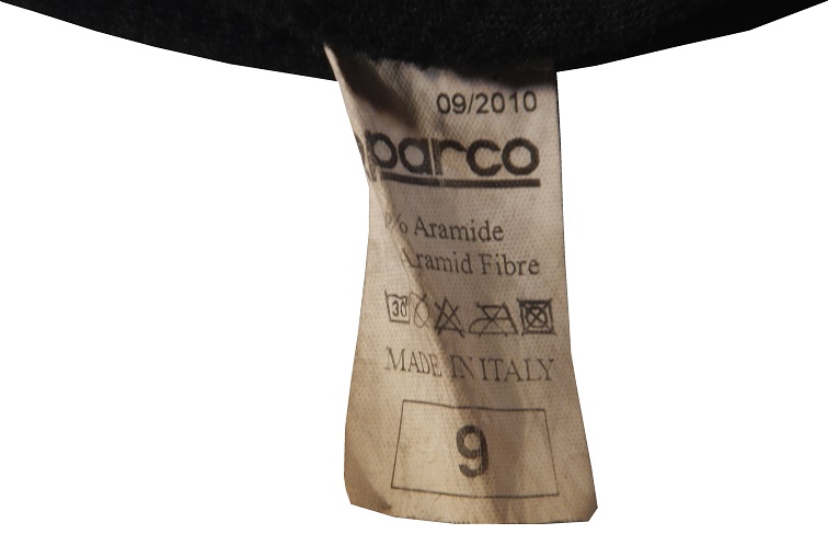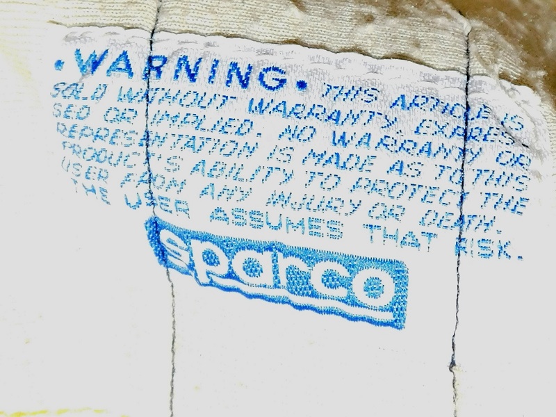 The back of the neck has an FIA 1986 STANDARD 1.008.CSAI.87. certification and a SPARCO logo embroidered.