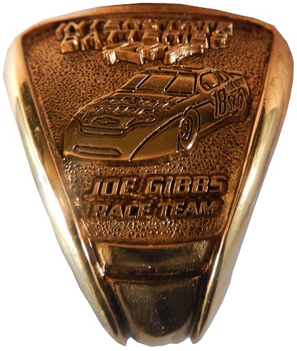 It briefly spread to Roush Racing, where, at the 1997 banquet, these rings were issued to Jeff Burton’s crew for his victory in the 1997 Hanes 500 at Martinsville. During that race, he started 10th and led 92 laps. This silver ring with an enameled 99 logo, a Roush Racing logo, car logo and signature on one side, and an Exide Racing Team logo, and crossed checkered flag logo on the other side.