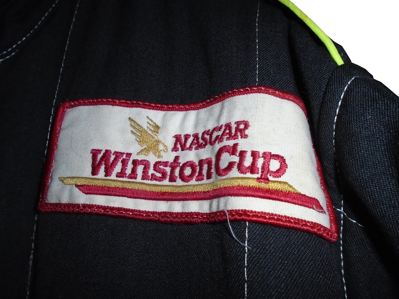 On the left chest, there is a NASCAR WINSTON CUP patch circa 1993-1996. The patch is covering something on the suit, but I can’t figure out what it is.