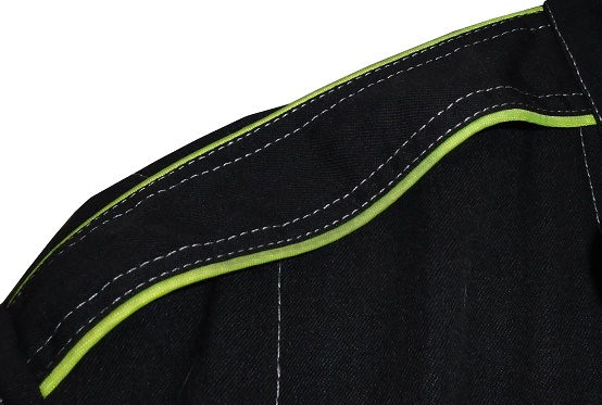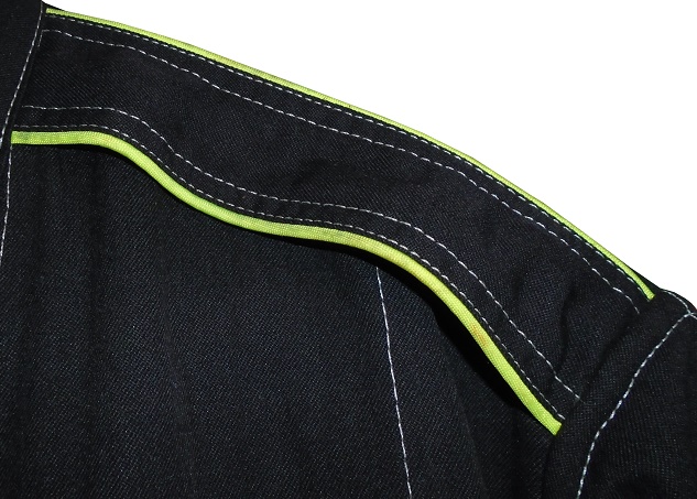The shoulders have black epaulets, outlined in white piping.