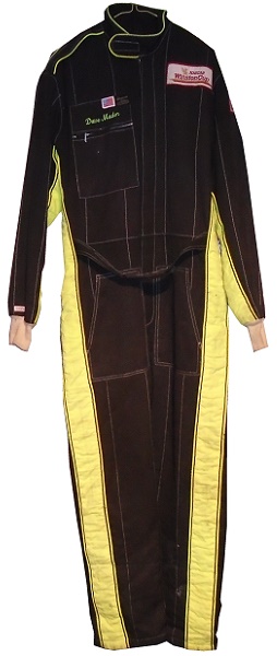 Coming off a 1992 where he raced 10 races in the Cup and Xfinity Series, it looked like Dave would have a ride for 1993. While he did race in the NASCAR Southeast Series, he didn’t race in the Cup Series again, though he did race in other series. This Simpson custom made double-layer suit was prepared for Mader sometime in the 1990’s. I’ve noticed something odd about the Winston Cup logo, but more on that later. The suit was worn, as it shows decent use, including stains on the yellow stripes.
