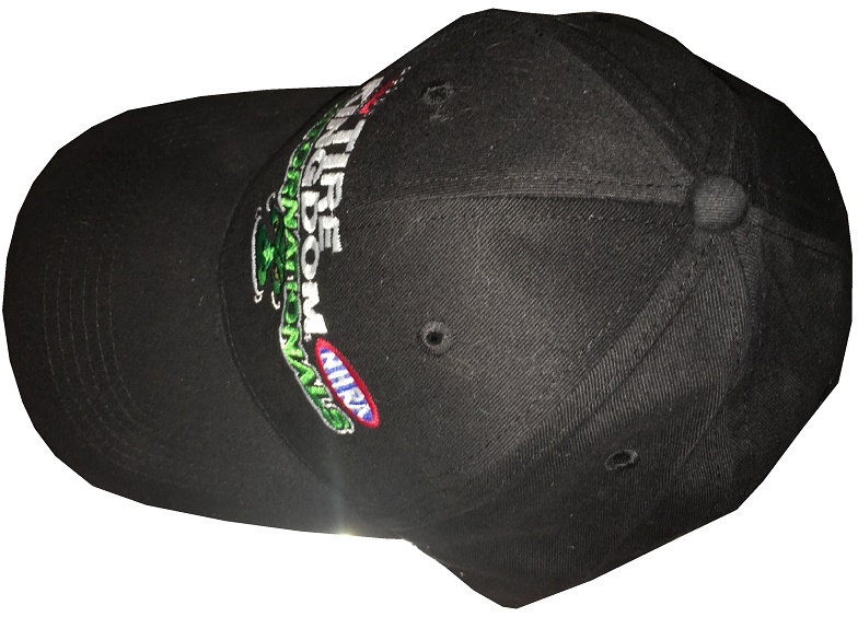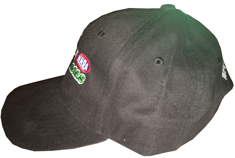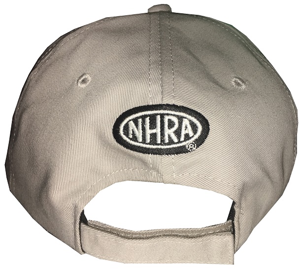 The back of the cap has an NHRA embroidered logo. Unlike more recent victory lane caps, the event location is not on the Velcro strap.