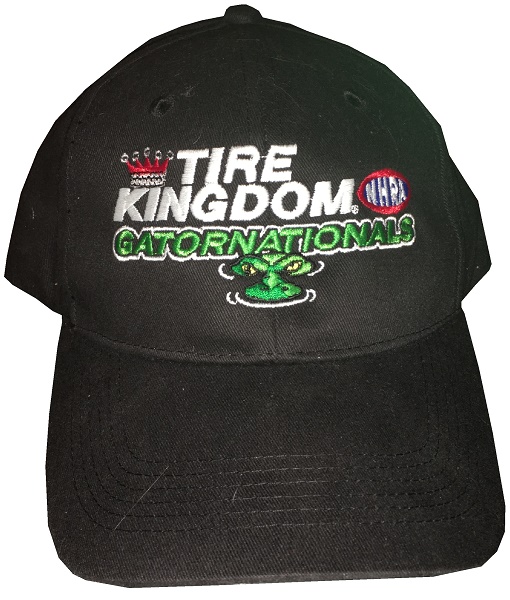 In 2010, Jason Line had one win, the 2010 Tire Kingdom NHRA Gatornationals. He beat Mike Edwards in the finals. During the post-race celebration, one crew member wore this victory lane hat. The hat is in great condition, still containing the cardboard in the front.