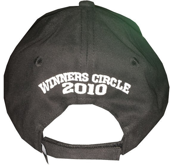 Another cap, this one a black event cap, accompanies the gray victory lane cap. The cap is branded as a victory lane cap, but all the research I’ve done hasn’t led to any proof that this was worn in victory lane. The cap is black, with a TIRE KINGDOM GATORNATIONALS logo on the front, and WINNER’S CIRCLE 2010 on the back. No NHRA or other logos are present.
