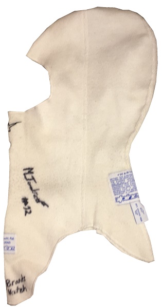 2012 marked the 4th season of Formula 2. During that season, Mathéo Tuscher raced the full season for MotorSport Vision. He won two races, the first Circuit Paul Ricard, and the second Autodromo Nazionale Monza. He also scored four poles, the first Silverstone, the second Prtimao, the first Paul Ricard, and the first Monza. He also earned 9 podeiums, and finished second in the championship. This Alpinestars Balaclava was worn for at least one of the two races at Brands Hatch in West Kingsdown, Kent, England. This worn balaclava shows a large amount of staining, and has been signed on the right side.Mathéo Tuscher signed the left side, and added #12, his car number for 2012.The front of the balaclava has holes for eyes and to help the driver breathe, the FIA safety-certification, and BRANDS HATCH written in Sharpie. The right side is unadorned, as compared to the other three sides. There is some light staining, which is hard to photograph.The back of the balaclava features some light stains, and the Alpinestars warranty label, as well as a flag tag. Next week, we transfer from a Formula Two winner to a CART winner.