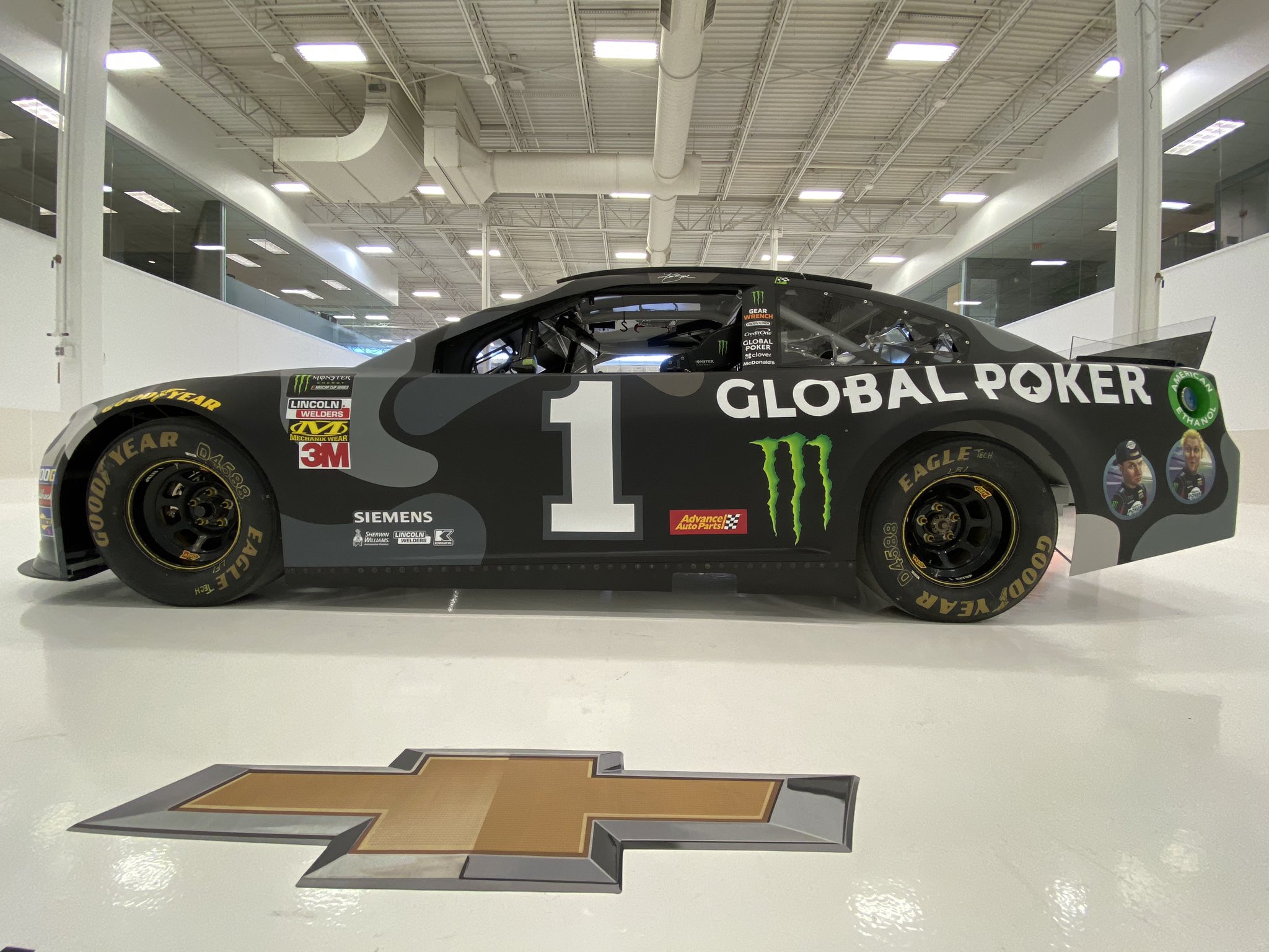 Kurt Busch #1 Global Poker Chevy Camaro-Camo doesn’t look good on a race car. This color scheme doesn’t work with the camo. The car doesn’t look good, so I give it an F