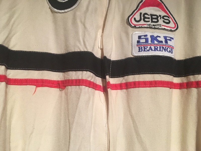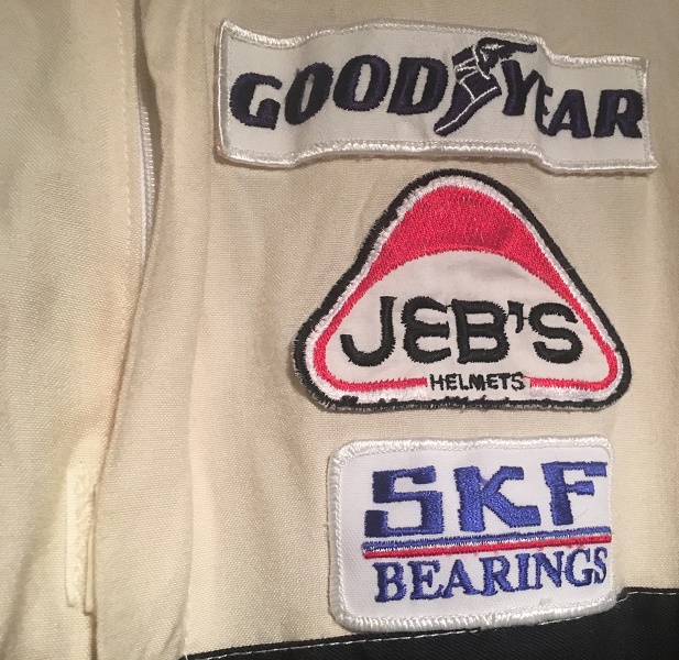 The left chest features GOODYEAR, JEB’S HELMETS, and SKF BEARINGS sewn onto them.