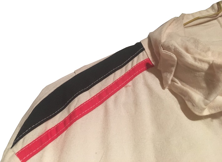 While BMW is considered a luxury car brand, they are involved in Australian GT, DTM, IMSA, GT Racing, and FIA Formula E. They have won the 12 Hours of Sebring in 1975, and 1999. At some point in the 1980’s, one of their teams came outfitted in this cream colored single-layer OMP suit. The suit shows some wear, and while I can’t match it 100%, there is an undated photo showing three crew members wearing this same suit design.