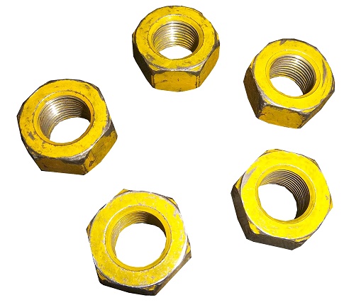 Race-used lug nuts go hand in hand with tires. Lug nuts are used once, and then sold after the race, such as these Tony Stewart examples. Lug nuts are Super glued to the rim, and one of these still has superglue residue on it.