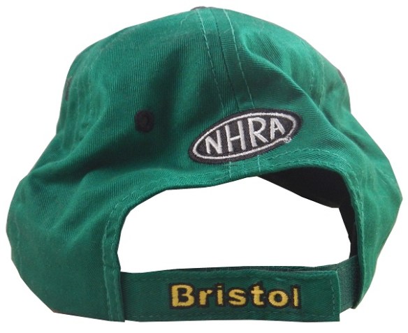 In 2015 the NHRA officials wore a different cap, which is a different shade of green. The left side patch has been replaced by OFFICIALS, and the under bill design has been removed.