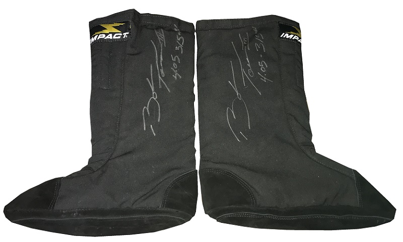 The right boot has been signed by Bob Tasca with the inscription “BOB TASCA 405 315 MPH.