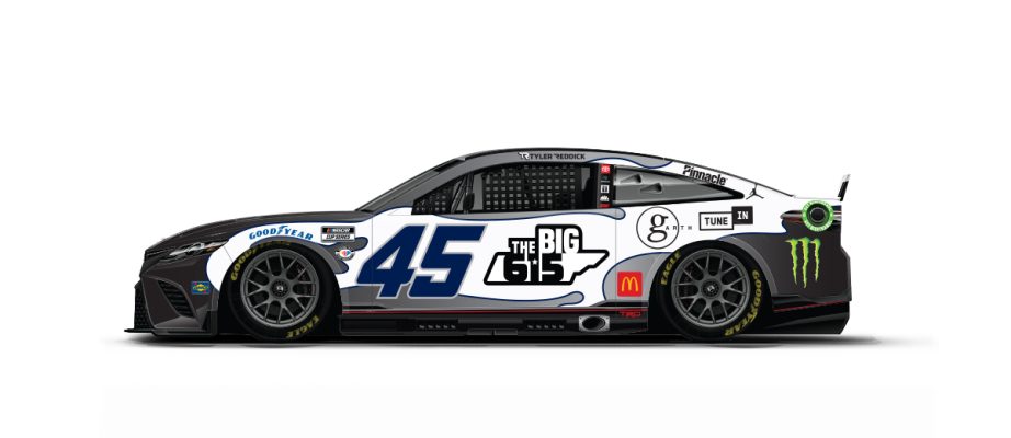 Tyler Reddick #45 The Big 615/Moneylion Toyota Camry-New sponsor for 2023, teal, black, and white, with a wave design. D