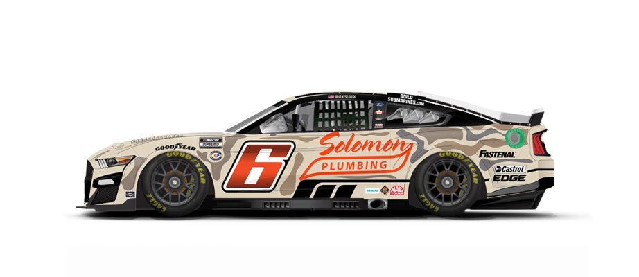 Brad Keselowski #6 Solomon Plumbing Patriotic Ford Mustang-New scheme for 2023, gray, and green camo across whole car. F