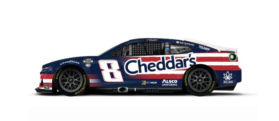 Kyle Busch #8 Cheddar’s Scratch Kitchen Patriotic Chevy Camaro–New scheme for 2023, same as last year, but with straight stripes. A