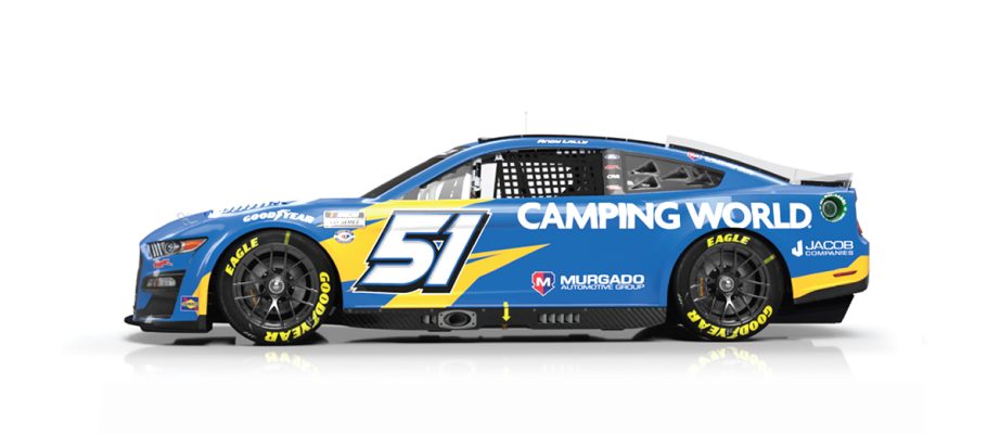 JJ Yeley #51 Jacob Companies Ford Mustang–New scheme for 2023, some stripes added. A