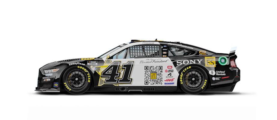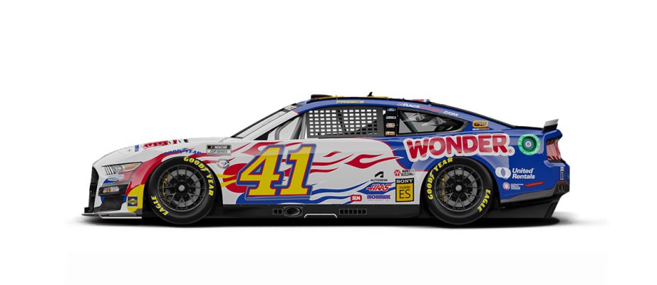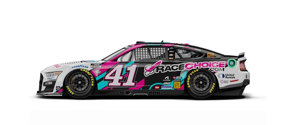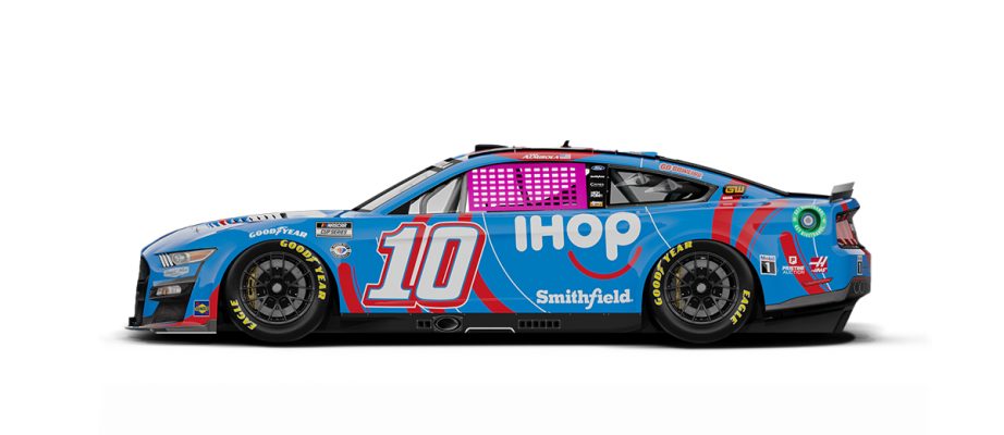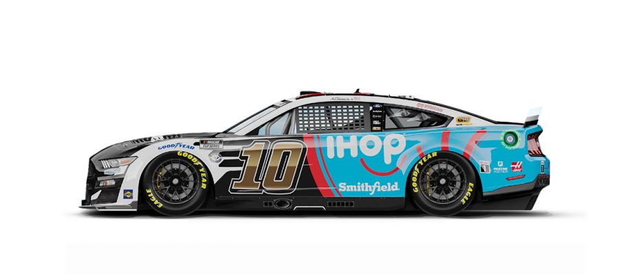 Ryan Newman #51 Biohaven/Jacob Co. Throwback Ford Mustang–New scheme for 2023, based on Ryan Newman’s 2002 Mobil 1 scheme. A