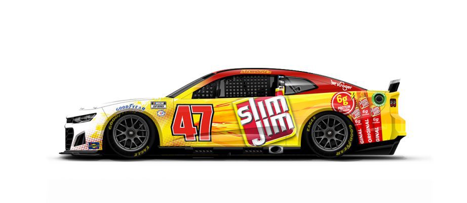 Ricky Stenhouse Jr. #47 Kroger/Scott Chevy Camaro–New sponsor for 2023, cleaned up with stripes on front. A-