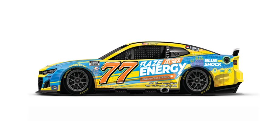 Ty Dillon #77 Raze Energy Chevy Camaro-New scheme for 2023, 2023 colors reversed. F