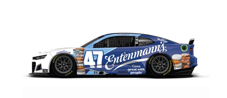 Ricky Stenhouse Jr. #47 Kroger/Entenmann’s Donuts Chevy Camaro–New scheme for 2023, same as Ball Park, but with blue instead of red. A