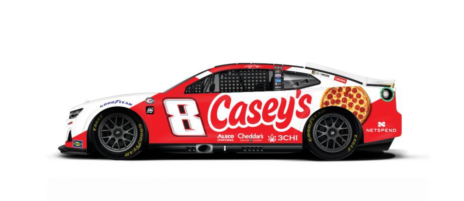 Kyle Busch #8 Cheddar’s Scratch Kitchen Chevy Camaro–New scheme for 2023, solid red, with black bottom and biscuits. A