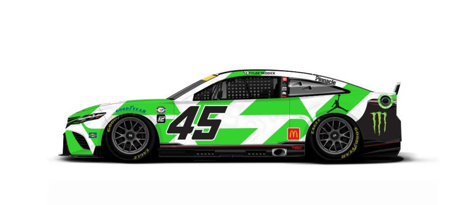 Ty Gibbs #54 Shriners Children’s Throwback Toyota Camry–New sponsor for 2023, based on Bobby Labonte’s 1995 #18 NFL Hall of Fame Chevy. A