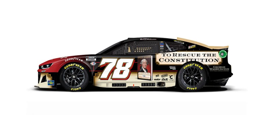 B.J. McLeod #78 South Dakota/FreedomWorksHere.com Chevy Camaro-New sponsor for 2023, blue and white with Mount Rushmore motif. B