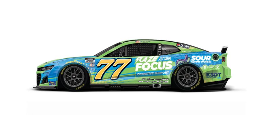 Ty Dillon #77 Raze Shot Focus Chevy Camaro-New sponsor for 2023, green and blue with designs. F