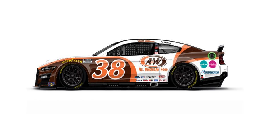 Justin Haley #51 Beef a Roo Ford Mustang-New sponsor for 2024, white, yellow, and green with some designs. A