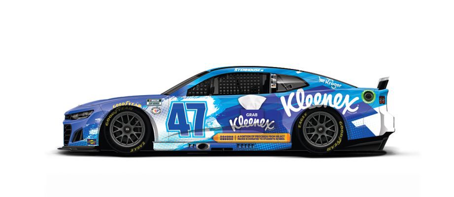 Ricky Stenhouse #47 Kroger/Kleenex 100 Years/Donors Choose Chevy Camaro-New scheme for 2024, blue with white. A