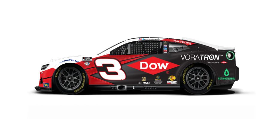 Austin Dillon #3 Dow Mobility Science Chevy Camaro–New scheme for 2024, cutting edge designs added. B+