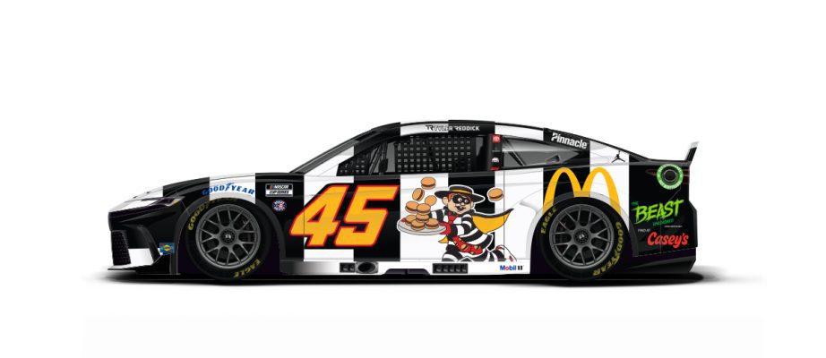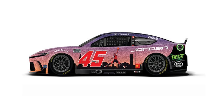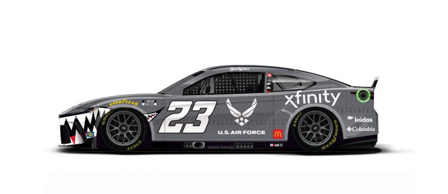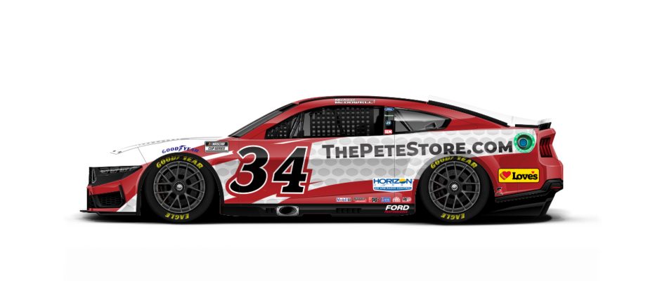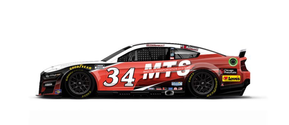 Justin Haley #51 MotoRad Ford Mustang-New sponsor for 2024, white, and red with a series of cutting edge designs on sides. C