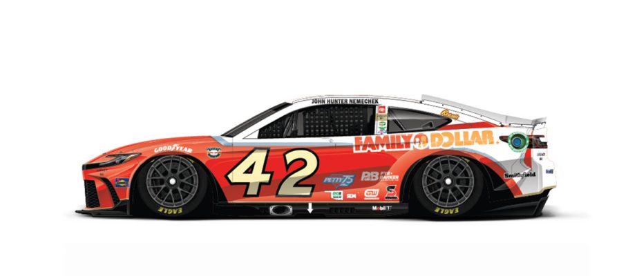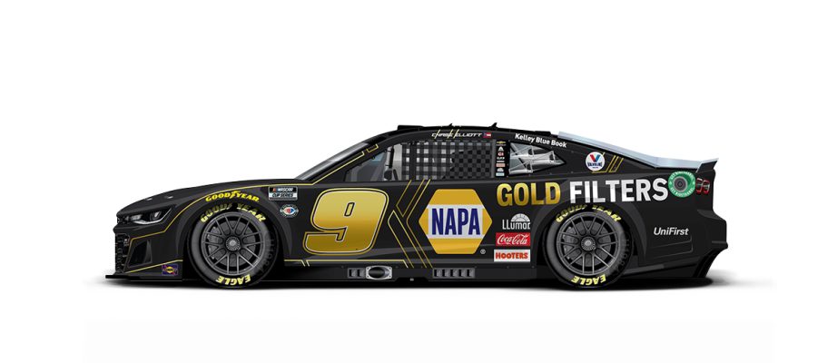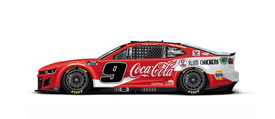 Kyle Larson #5 Hendrickcars.com Throwback Chevy Camaro–New scheme for 2024, based on Terry Labonte’s Kellogg’s theme. A