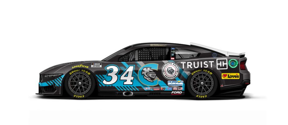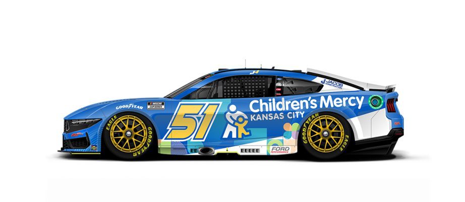 Justin Haley #51 Children’s Mercy Hospital Ford Mustang-New sponsor for 2024, blue white with pastel designs. B