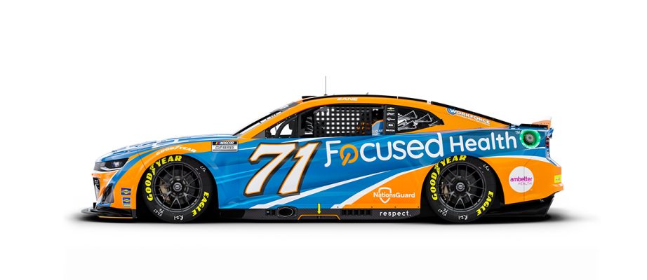 Zane Smith #71 Focused Health Chevy Camaro-New scheme for 2024, orange replaces white on most of car. F