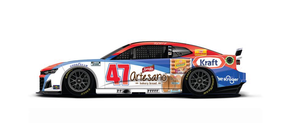 Ricky Stenhouse Jr. #47 BallPark/Kraft Throwback Chevy Camaro–New scheme for 2024, based on Mark Martin’s 2004 Bud Shootout scheme. C