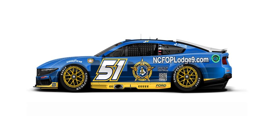 Justin Haley #51 NC Fraternal Order of Police Ford Mustang-New sponsor for 2024, blue with dark blue skyline, and gold stripe. A-