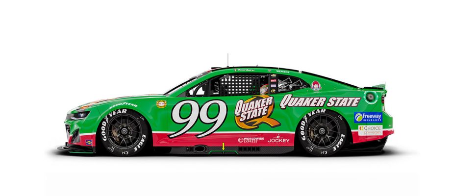Daniel Suarez #99 Quaker State Throwback Chevy Camaro–New scheme for 2024, based on Adrian Fernandez’ 2004 Indy 500 ride. A
