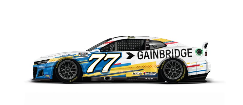 Carson Hocevar #77 Gainbridge/NASCAR Day Giveathon Chevy Camaro-New sponsor for 2024, redesign of Gainbridge with lighter colors. F