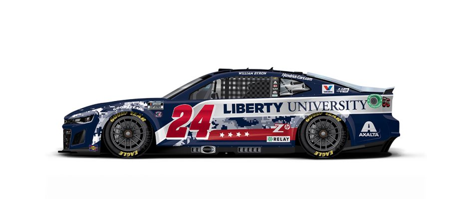 Kyle Larson #5 Valvoline Chevy Camaro–New scheme for 2024, red, white, and blue with series of stripes. B