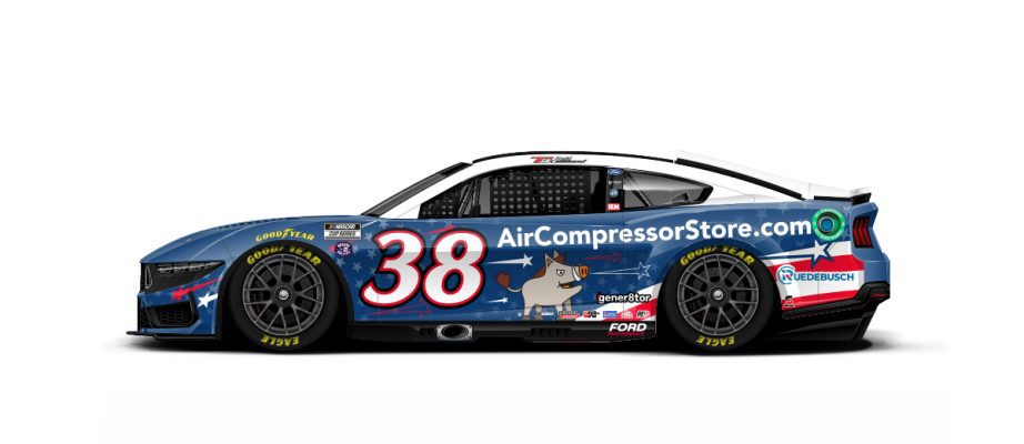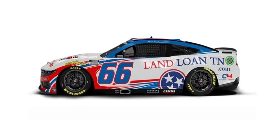 Chad Finchum #66 Cooper&Hunter/Land Loan TN Ford Mustang-New sponsor for 2024, patriotic wave motif across car. C