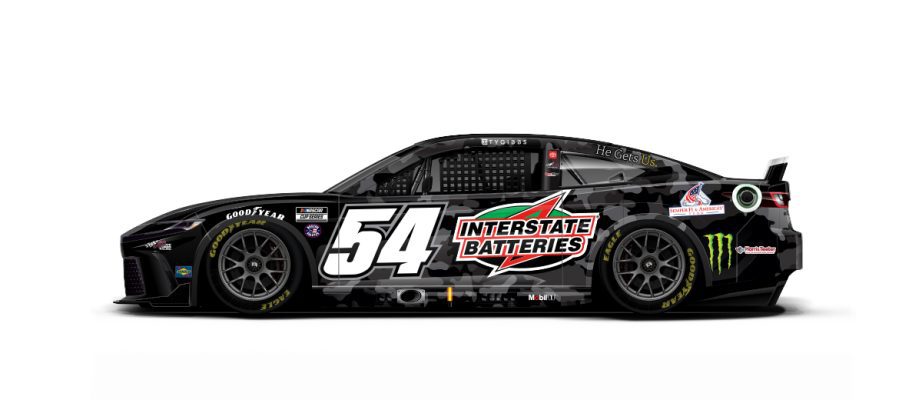 Ty Gibbs #54 Interstate Batteries Patriotic Toyota Camry-New scheme for 2024, black camo. F