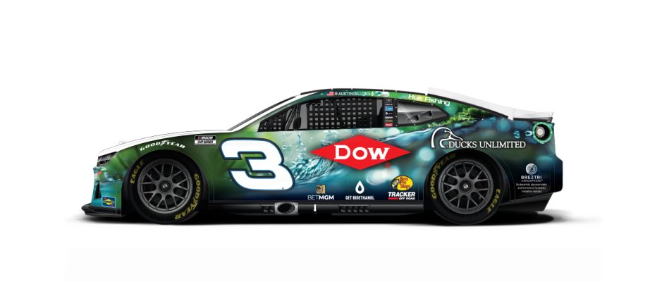 Austin Dillon #3 Dow/Rivers Are Life/Ducks Unlimited Chevy Camaro-New sponsor for 2024, river motif. A