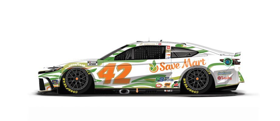 Ricky Stenhouse Jr. #47 Mariano’s/Colgate Optic White Chevy Camaro-New sponsor for 2024, red with white roof. A