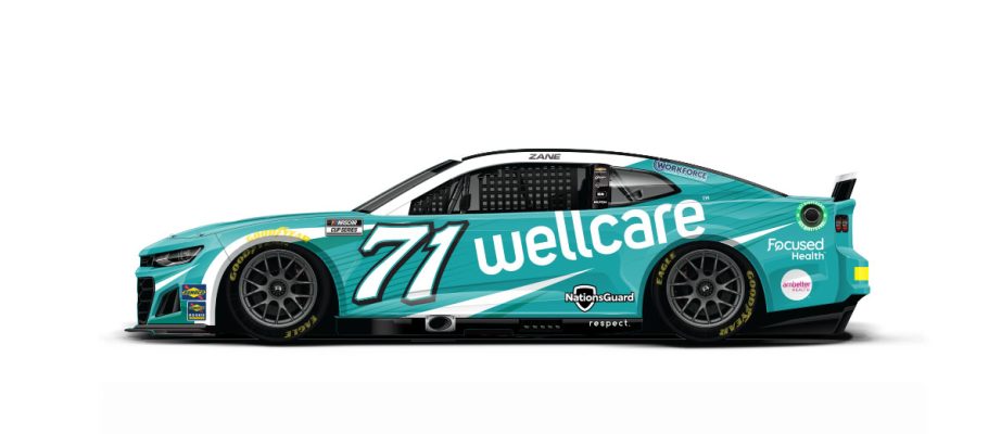 Zane Smith #71 Wellcare Chevy Camaro–New scheme for 2024, cutting edge designs added. A-