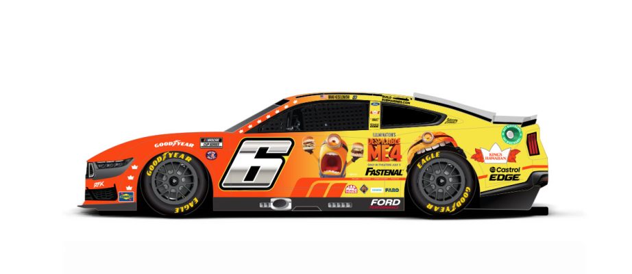 Brad Keselowski #6 King’s Hawaiian/Despicable Me 4 Ford Mustang-New scheme for 2024, orange fade to yellow with minions. A