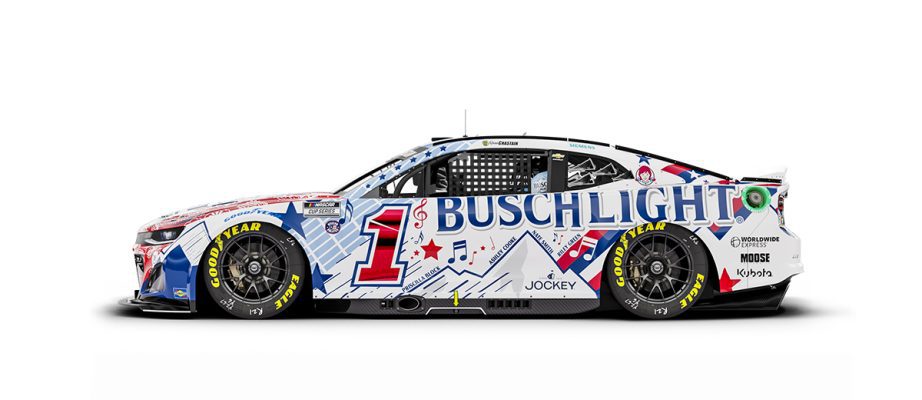 Ross Chastain #1 Busch Light Throwback Chevy Camaro-New scheme for 2024, throwback logos. C