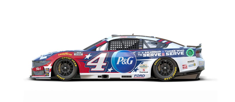 Josh Berry #4 P&G Supports Our Military Ford Mustang-New sponsor for 2024, red, white, and blue with a series of designs. C